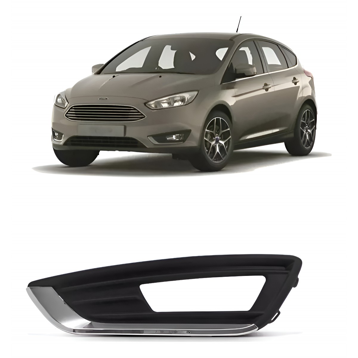 Grade Moldura Milha Esquerdo Focus 16 17 18 19 Friso Cromado Preto